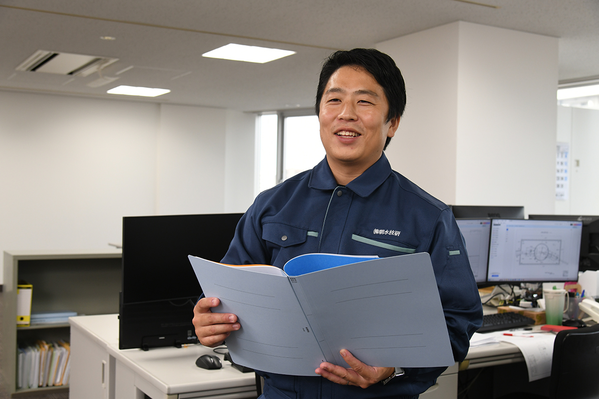 RECRUIT 採用情報 一般の人には、なかなか気づかれないでも実は、めっちゃ地域を支えてる! >>仕事のやりがいは? 一般の人にとっては「揚排水ポンプ設備って何のこと?」と、あまりイメージがつかないかもしれませんが、たとえば灌漑(田んぼや畑に水を送り込むこと)などの用途に使われるものです。その整備や更新(取り換え)工事の現場を監督するのが私の仕事です。 田んぼや畑に水が送れなくなったら、作物が育たず、大変なことになりますよね。だから揚排水ポンプ設備は万全に整備して、いつでも正常に稼働させておかなければいけません。 係長:Oさん(1級電気工事施工管理技士補、第一種電気工事士) 入社6年目(創業メンバー)/前職:同業 「ポンプの調子がおかしい」「水が出なくなった」など、トラブルが起こった時にSOSが来て駆けつけることもあります。速やかに対処して事なきを得たら、農家の方々から「助かったよ!」と、とっても感謝していただけます。自分の仕事が、確かに誰かの役に立っているのだと実感できて、誇らしいですよ。 それに、経験を積めば積むほど、対応できる現場の規模は大きくなります。自分の成長に比例して仕事の手応えが増していくってことです。モチベーションになりますよ! >>朝水技研の好きなところは? 地域と密着した仕事ができることですね。対応エリアは、基本的には千葉県・茨城県近郊あたりまで。必要とされた時にすぐに駆けつけられる範囲に絞っているんです。「この地域には朝水技研がある。何かあってもすぐに来てもらえるから大丈夫」と、地域の農家の皆さんの安心材料になっている自負があります。 それから、創業メンバーとして会社の成長にゼロから立ち会えていることが、とても刺激的で面白いです。もちろん順風満帆なことばかりではないですが、一歩一歩、着実に業績は上がり、規模は拡大しています。「どこまで行けるかな」って、ワクワクしっぱなしですよ。 つい最近、事務所も移転し、以前の約2倍の大きさになりました。新事務所の規模に合わせて、これから人材も増員していくことになるはず。新人さんの持ち込んでくれる新しい空気が、さらに成長を加速させてくれるでしょうね。楽しみにしています! >>大変だと思うことは? 止めてはいけない設備を守っているからこそ、「何かあったらすぐに駆けつけるぞ!」という緊張感はあります。もちろん、自分が動けない時には他の仲間に頼むことができますし、休む時はしっかり休むのですが、やっぱり、出勤日でなくても「何事も起こりませんように」という気持ちは常に頭の片隅にありますね。それだけ、重要な社会インフラを支える仕事をしているってことですよね。 >>これから入社する人へのメッセージ ちょっと特殊な仕事だから、はじめのうちは、わからないことだらけなのが当たり前。少しずつ覚えて行けば大丈夫。丁寧に教えるから心配しないでください。私も指導役になりますが、自分のやり方を押し付けるつもりはありません。一人ひとりを見て、一番その人に合っていると思う教え方を探っていきます。もしやりづらいことがあったら、遠慮なく言ってください。一緒に成長していきましょう! 仕事も遊びも全力でやる!そんなパワフルな人が入社してくれたら心強い! >>仕事のやりがいは? 前職まではずっと職人で、指示を受けて実作業をやる側。今は、自分が最終的な判断を下す側になりました。責任を背負うので、ちょっとプレッシャーにも感じるけど、それがやりがいにつながっています。いい意味でのプレッシャーですね。「ヒリヒリするぜー!」と、楽しく味わっています。 それと、自分は元職人だからこそ、職人の人たちと話が通じやすい面が多々あります。 点検・営業担当:Yさん 入社1年目(前職:配管工事の職人) これまでの経験が無駄になっていないんだと実感できて、うれしいですね。一方で、職人時代には「こういうことだ」と思っていたけど、今の立場になって初めて「あ、実はこういうことだったのか!」と気づくこともあるんです。視野が広がるというか。これまでの自分がアップデートされていくような、面白い経験をさせてもらっています。 >>自分の成長を実感する瞬間は? お客様が「こうしてほしい」と考えている通りに、現場で対応できるとは限りません。そんな時にうまくご説明して、お客様にご納得いただくのは、営業の大事な役目の一つです。 ある時、お客様先のご担当者の方が「私は現場に立ち会っているので、こういう工事法でやるしかないのは納得しているのですが、上から『別のやり方でやれるんじゃないの?』と言われてしまって……」と、板挟みで困っていらっしゃったので、「それでは、このようにご説明してみてください」とお伝えしました。その方が、その通りに上司の方に説明したところ、すんなりと納得してもらえたとのこと。 あの時「それでは~~」の一言が出せた瞬間は、我ながら、営業として一人前になった手応えを感じ